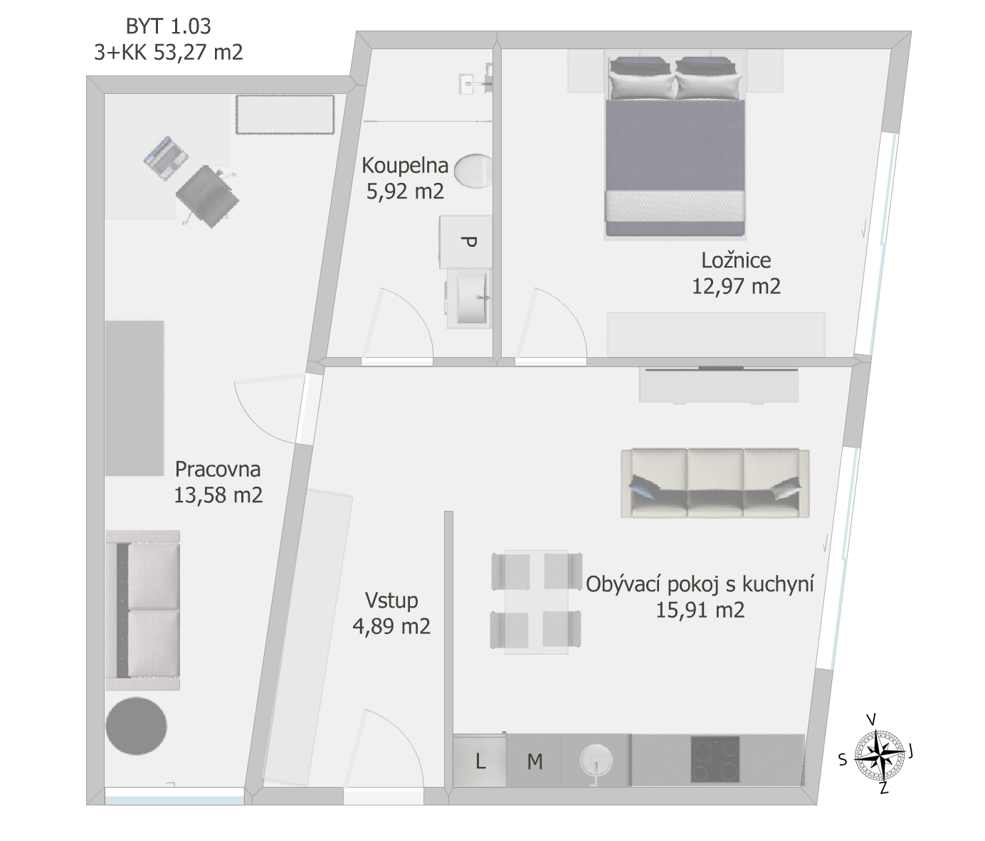 Nabízíme vám ke koupi byt 3+kk č. 1.03 o výměře 53,27 m² s vlastní předzahrádkou o velikosti 44 m², který vzniká v rámci nového rezidenčního projektu 14 bytů v Plzni – Božkově. Dokončení výstavby je plánováno na 4. čtvrtletí roku 2026.