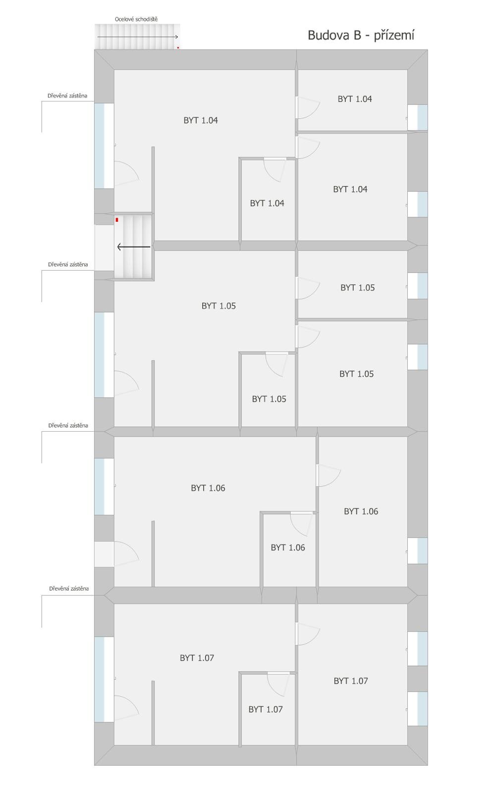- byt 3+kk o výměře 60,43 m² v budově B přízemí