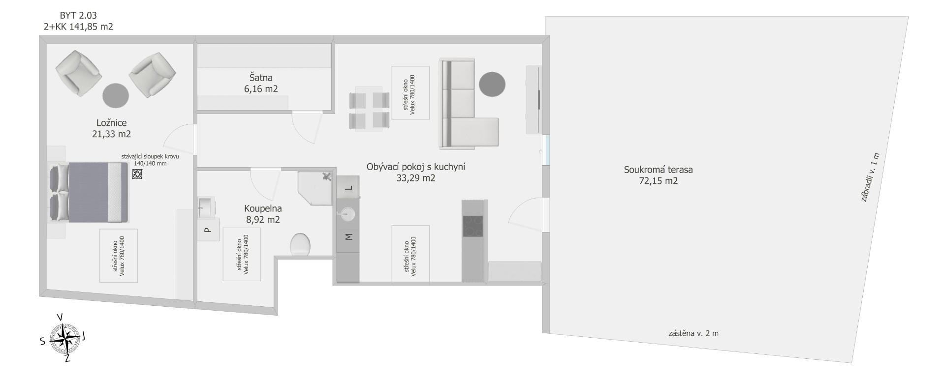 - velká soukromá terasa o velikosti 72,15 m²