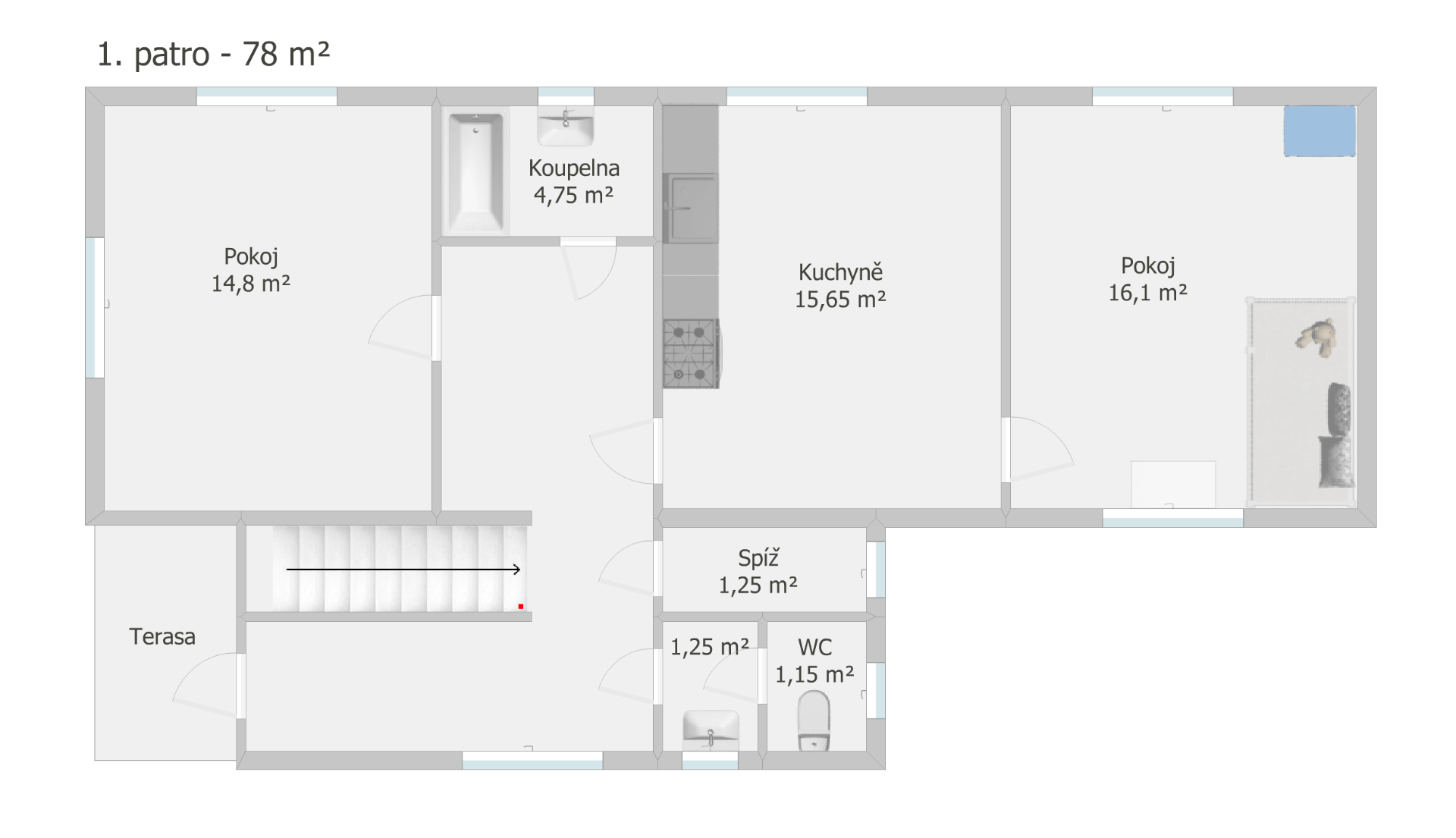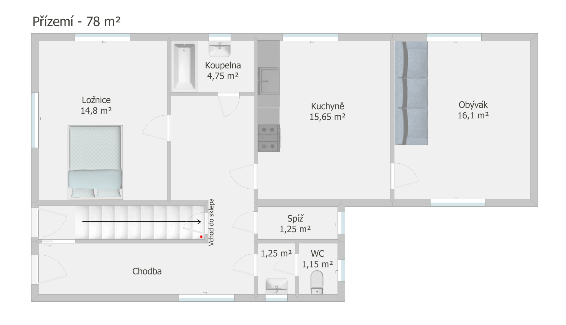 V domě se nachází dvě samostatné bytové jednotky o dispozici 2+1 – ideální pro vícegenerační bydlení nebo jako investice k pronájmu.