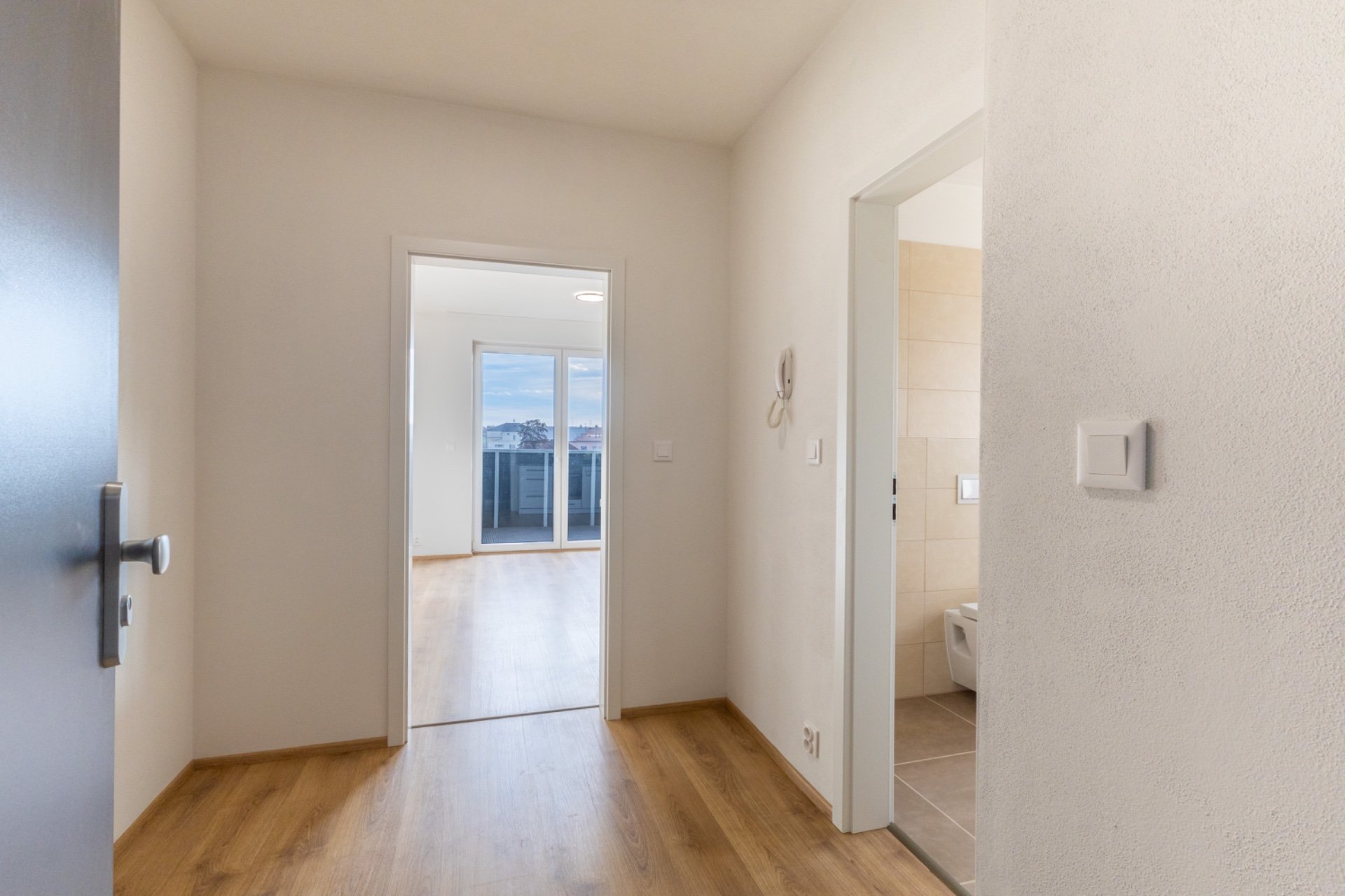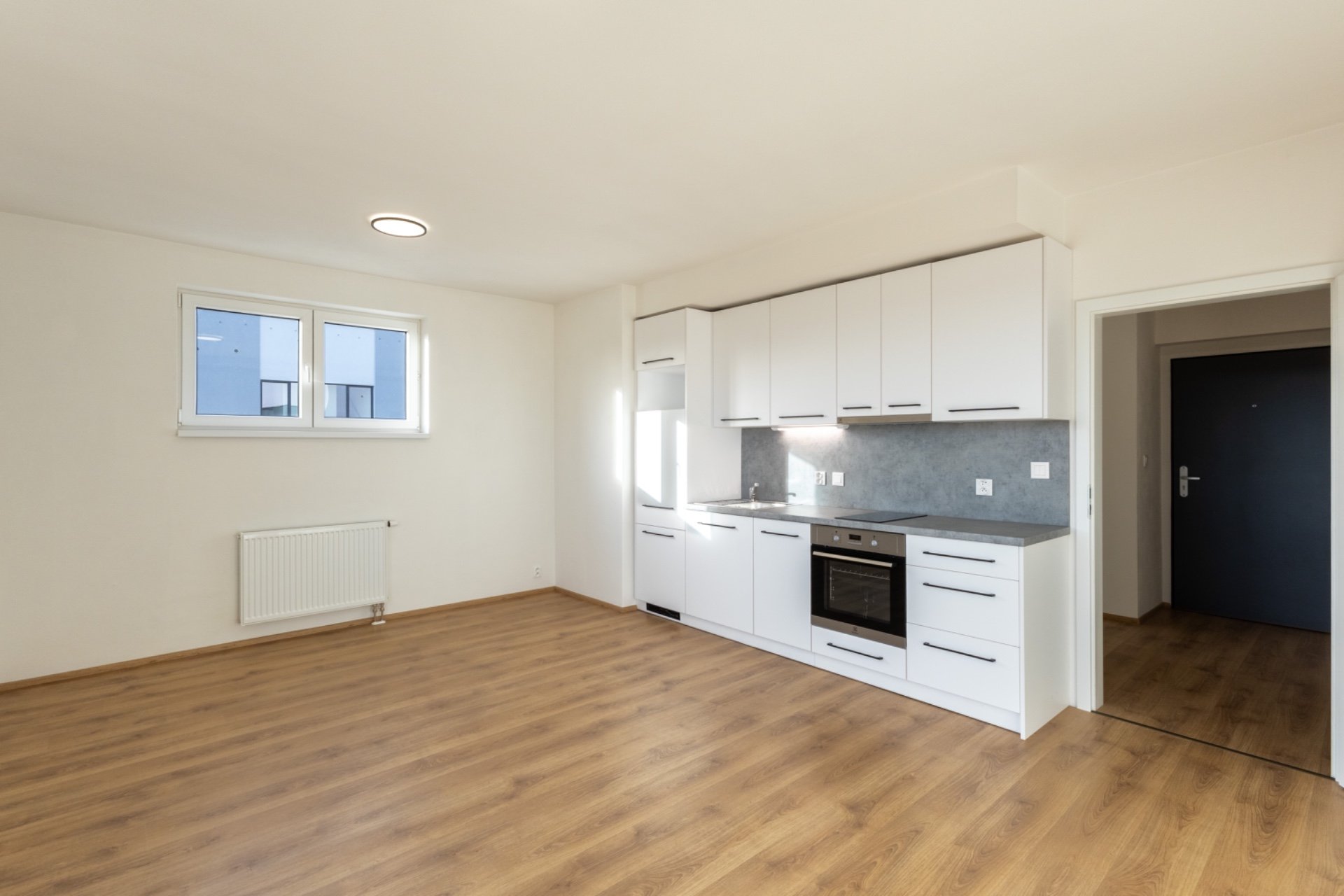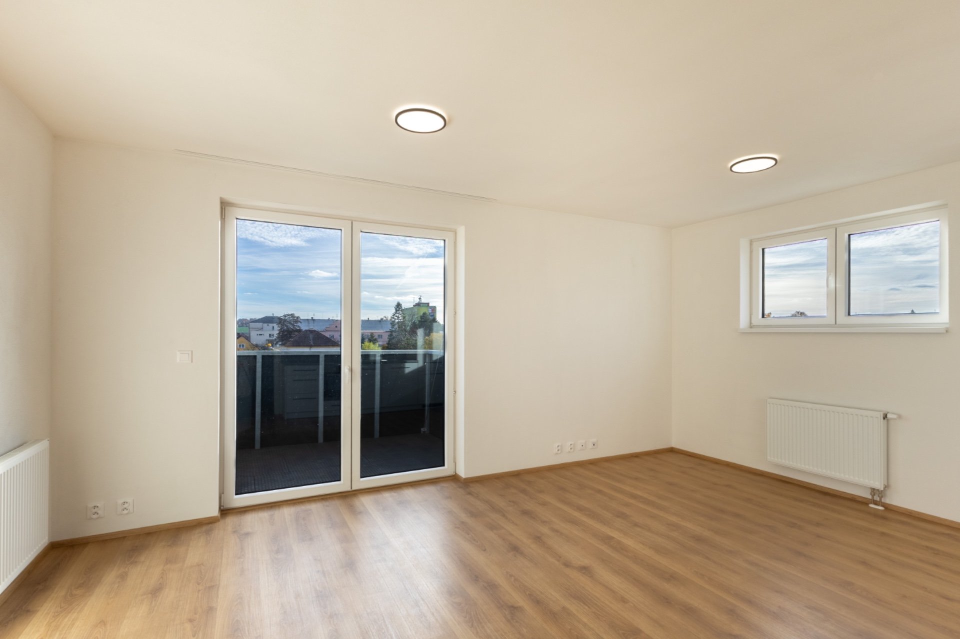 Nabízíme k pronájmu nový byt o dispozici 1+kk (34m2 + 4,7 m2 balkon), který se nachází ve 3. patře novostavby bytového domu s výtahem v klidné části obce.